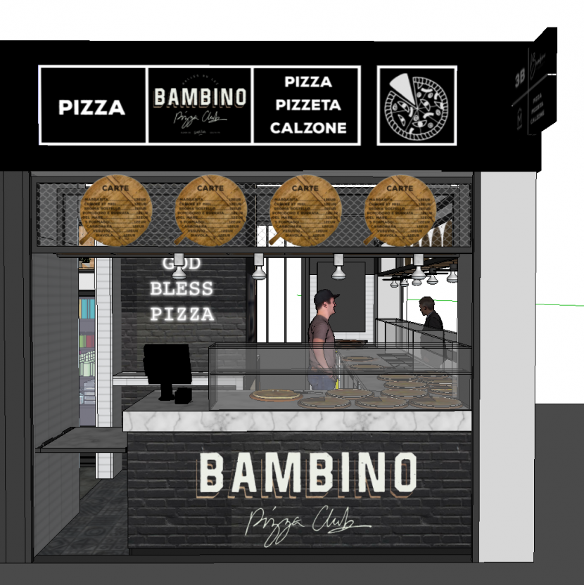 Réalisation d’un stand pizzeria (Bambino Pizza Club) et d’un bar à salades (Tonton Haricot) dans les Halles du Lez.